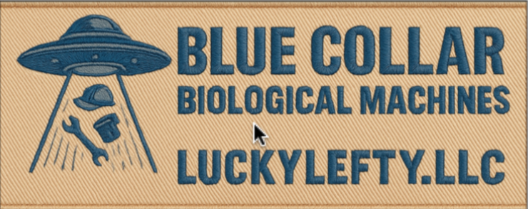 A completely unique homage to impending disclosure, the “BLUE COLLAR BIOLOGICAL MACHINES” series depicts entities that may be echoes of our future selves – or drones built from biological material – cast in the role of working-class heroes. This design imagines them as fishermen: nets slung over their shoulders, boots sunk in the deck, hauling in square groupers under cover of salt air and starlight.