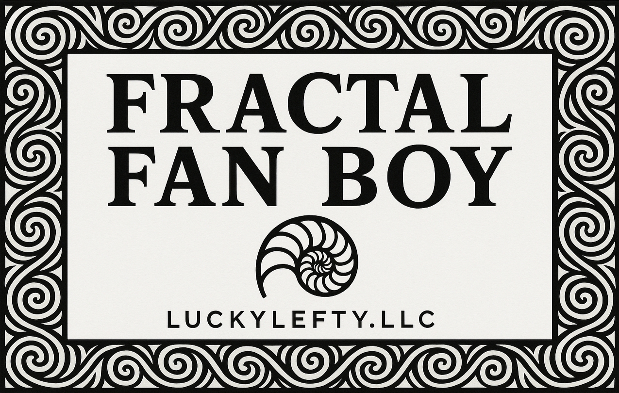 This print takes the energy of the original Fractal Fan Boy and turns the contrast up, shifting from subtle to cosmic. It’s for the ones who think in loops and see the pattern behind every chaos. Pair it with denim, charcoals, or layered knits — it always hits loud but lands smooth.