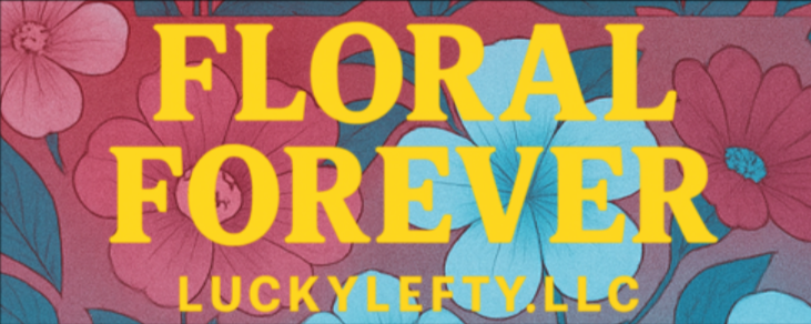 A teal-and-coral floral swarm made for summer. “FLORAL FOREVER TEAL AND CORAL TESSELATION” is a print where oversized blossoms meet bees in motion, their geometry hinting at hives and hidden order beneath the chaos. The coral petals stretch wide, but the bees remind you—beauty always has its sting.